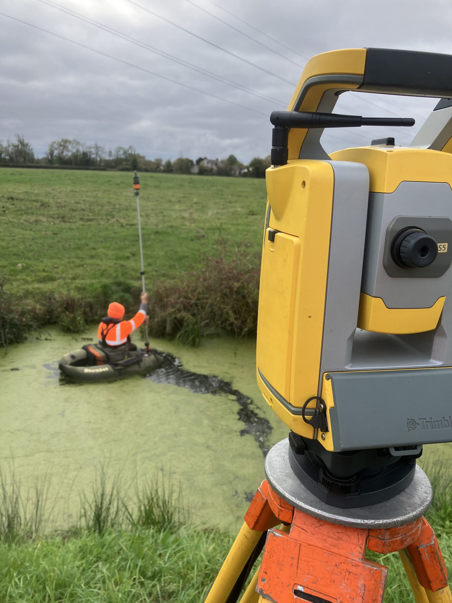 During October, two Storm Geomatics survey teams were tasked with tackling a channel cross-section job in Liswerry, Newport. The geospatial data collected will assist in updating the existing Liswerry Flood Model. The channel connects directly with the tidal River Usk via a series of tidal flapped gates and tilting weirs. Access through agricultural land parcels, power stations, and water treatment facilities was negotiated with Natural Resources Wales’ assistance. They took time to meet surveyors on site and visit certain landowners. Both survey teams utilised floating platforms to safely cross the silted channel and are on track to deliver the full set of deliverables to industry-standard specification.